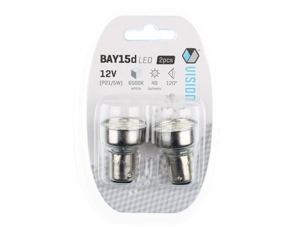 Bulb VISION P21 / 5W BAY15d 12V 12x 5mm LED, white, 2 pcs