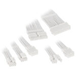 In addition to a 16-pin 12VHPWR to 3x 8-PCIe cable with 16AWG conductors, the kit includes cables for powering the mainboard in Mini-ITX systems. The CableMod Pro ModMesh 12VHPWR Extension Kit uses a high quality sleeving made of ModMesh. Some cables are equipped with pre-installed, closed cable combs. Further cable combs and a cable shroud are included in the kit.