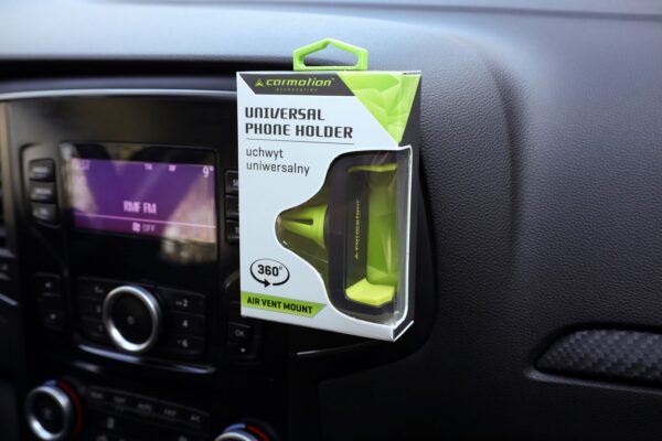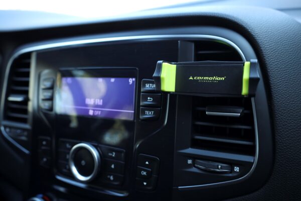 Practical and ergonomic support to be mounted on the air inlet grille. It is designed for devices with a width of 58 to 90 mm. A solid clip allows a stable fixing of devices.