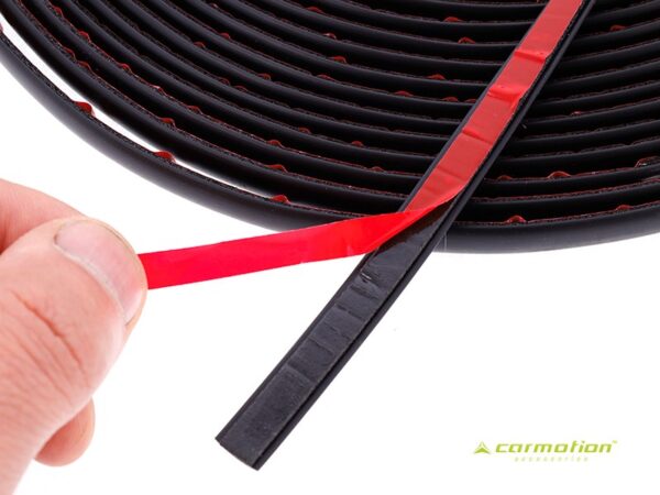The flexible decorative strip black matt is weatherproof. Its assembly is very simple. The decorative strip has a strong double-sided adhesive tape on the underside.
