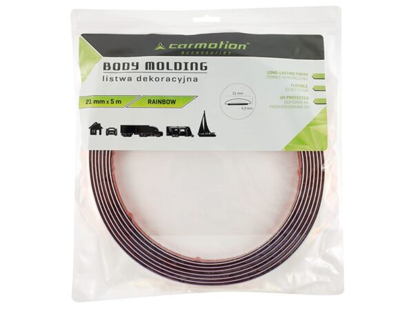 The flexible decorative strip rainbow is weatherproof. Its assembly is very simple. The decorative strip has a strong double-sided adhesive tape on the underside.