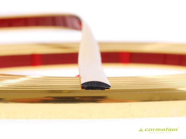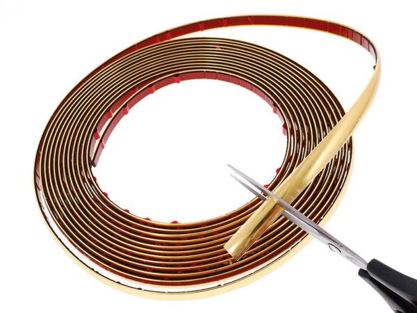 The flexible decorative strip, gold is weatherproof. Its assembly is very simple. The decorative strip has a strong double-sided adhesive tape on the underside.