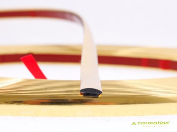 The flexible decorative strip, gold is weatherproof. Its assembly is very simple. The decorative strip has a strong double-sided adhesive tape on the underside.