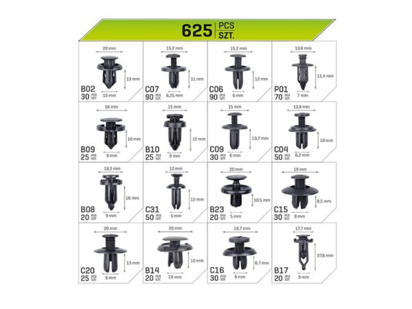 Universal car upholstery rivets, clips and connectors are weather resistant. They are waterproof, do not rust or corrode in bad weather conditions. They are made from strong and durable material: plastic. They adapt to most car brands available on the market.