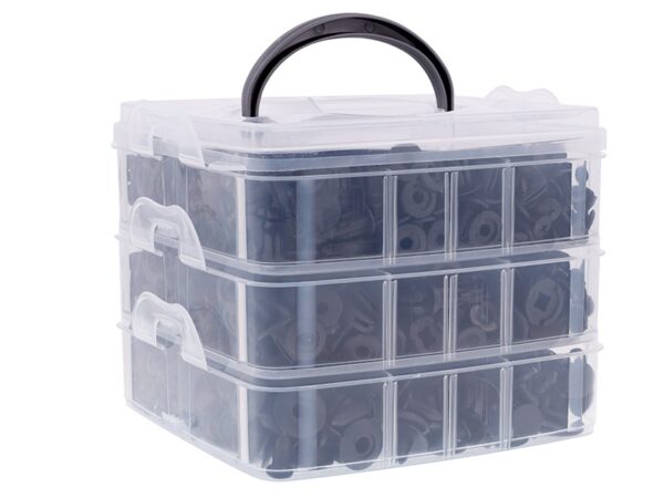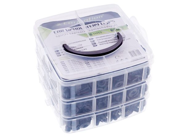 The clips are packaged in a practical plastic box with a handle for easy transport, so they are always in the same place.