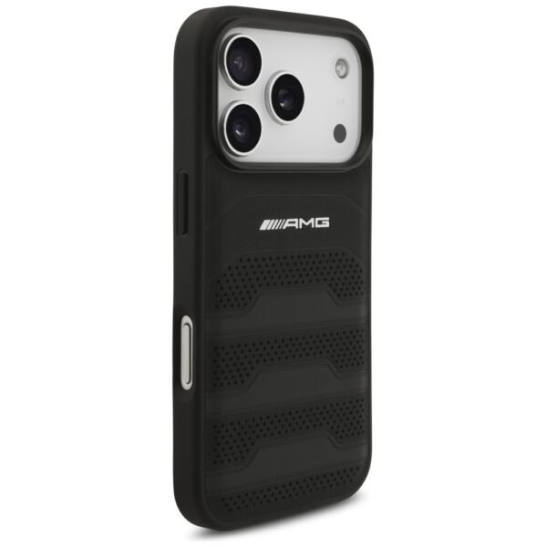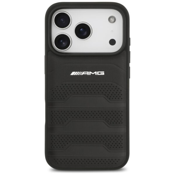 Dėklas AMG Leather Debossed Lines Logo skirtas Apple iPhone 17 Pro juodos spalvos