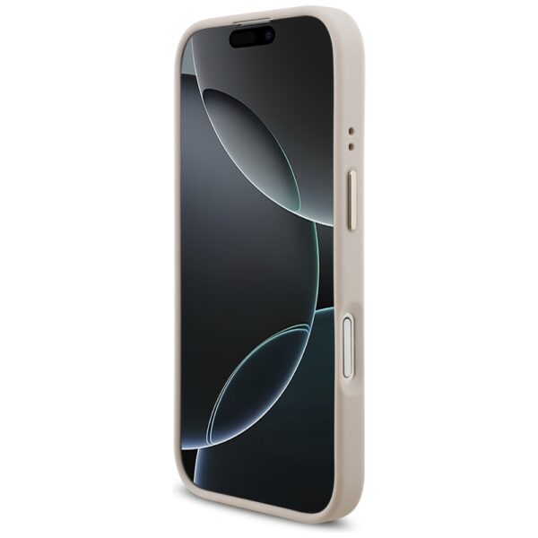 Dėklas Guess 4G Strass Logo & Big Strap Metal Buttons MagSafe skirtas Apple iPhone 17 rožinės spalvos