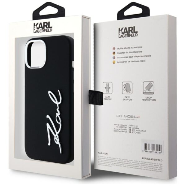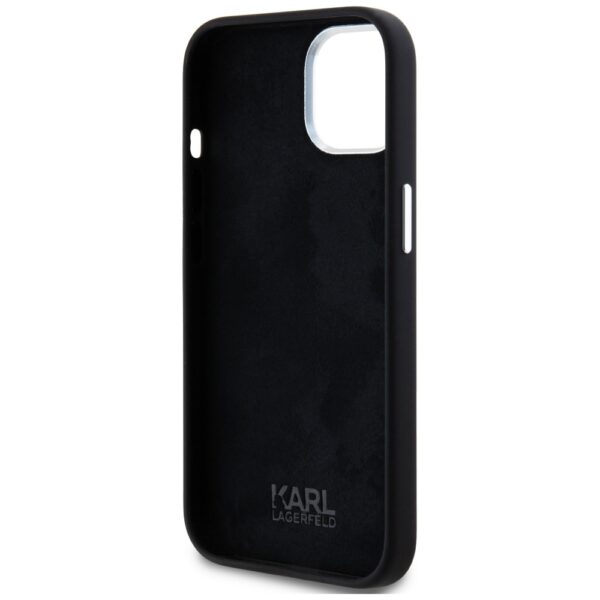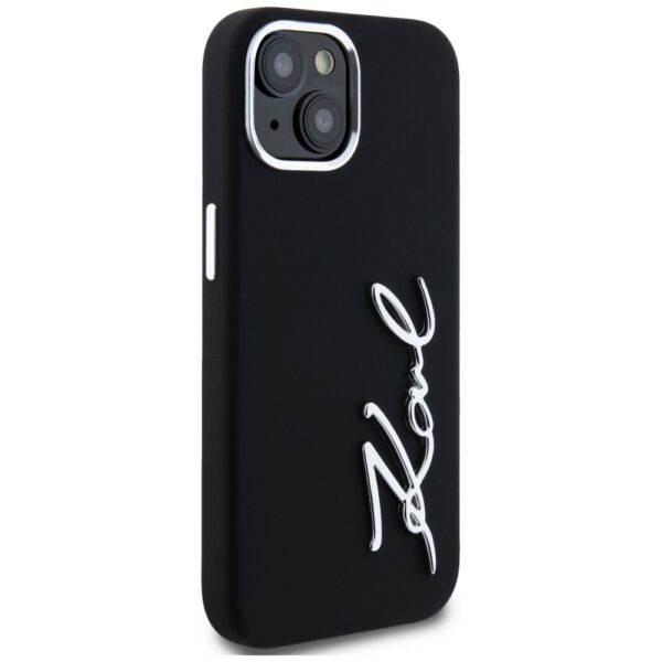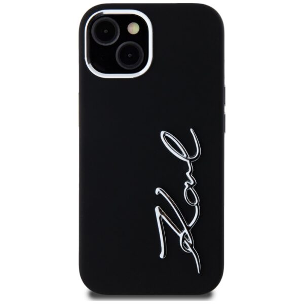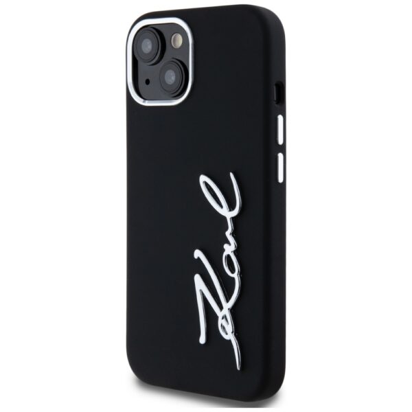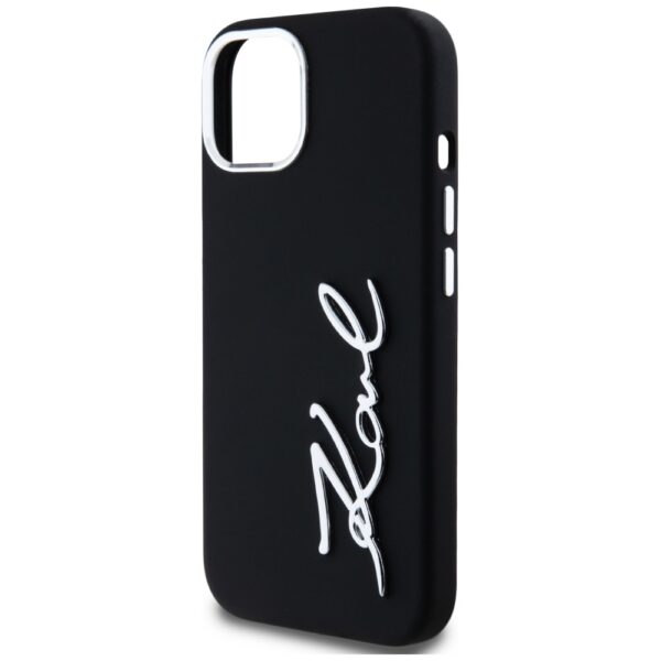 Dėklas Karl Lagerfeld Silicone Metal Script Logo skirtas Apple iPhone 15 juodos spalvos