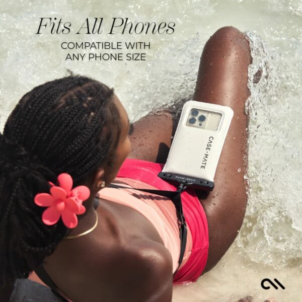 Case-Mate Waterproof Floating Pouch is a universal, waterproof protective case for most smartphones with a screen size of up to 6.9″.