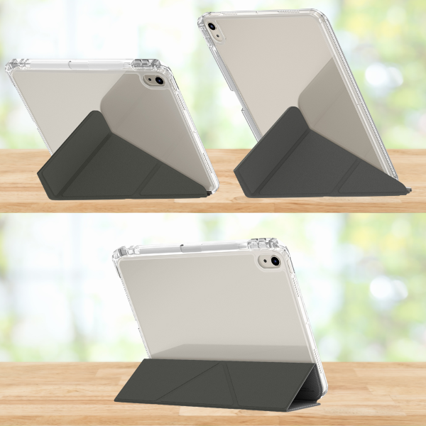 The case is equipped with a foldable and detachable Y-fold type cover, which allows you to set your iPad in three convenient positions – perfect for writing, watching movies, or video conferencing.