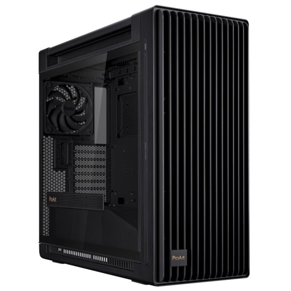 Engineered for optimal airflow and enhanced cooling, the ProArt PA602 case is a dream for creative professionals seeking focused workflows. With a front panel designed for maximum air intake, thick pre-installed 140 mm rear fan and two 200 mm front fans, an integrated fan hub and support for a 420 mm radiator on the top, it delivers top-tier performance right out of the box. The ProArt PA602 caters to those in search of high-end thermal solutions. Meanwhile, a minimalist design ensures creators can work with fewer distractions.