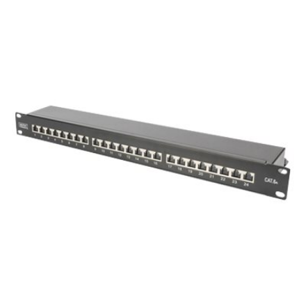 CAT 6A | Patch Panel | RJ45, 8P8C | Suitable for 483 mm (19″) cabinet mounting; Transmission properties: Category 6A, Class EA; Area of application: Up to 500 MHz, 10GBase-T; Size:482.6 x 44 x 109mm | RJ45 shielding (Tinned bronze)