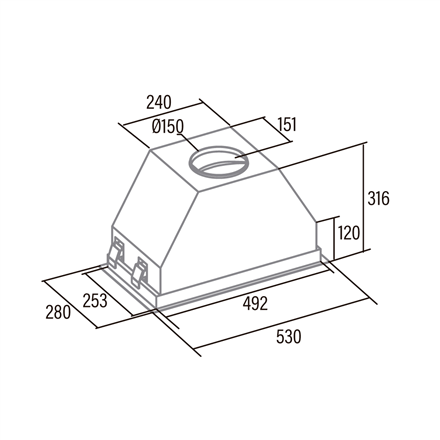 | Kitos savybės | 4 extraction levels, 3 + 1 TURBO Max. Pressure: 470 Pa; 150/125 mm outlet diameter |