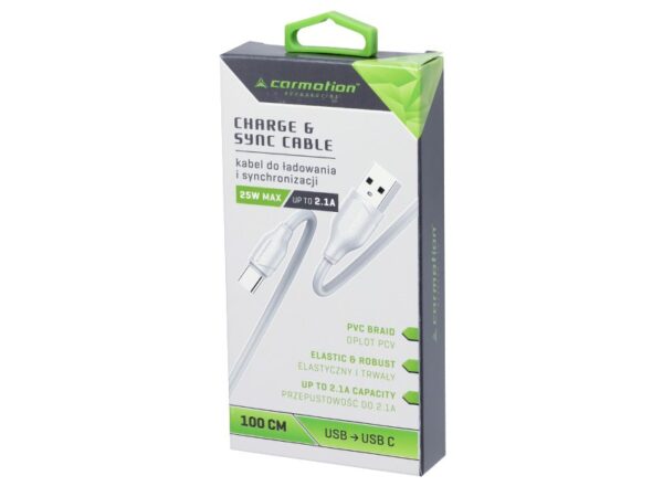 High quality USB > USB-C cable, ideal for charging and transferring data between devices. It guarantees a stable connection and high transfer speed.