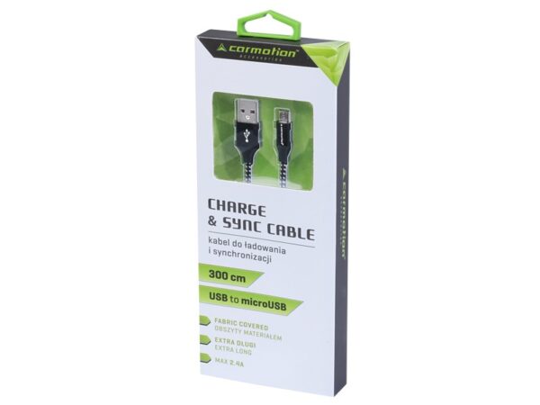 Įkrovimo ir sinchronizavimo laidas 300 cm, braided microfiber, USB> micro USB