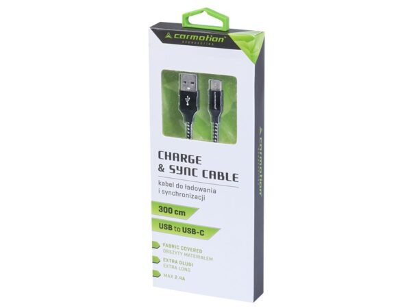 Įkrovimo ir sinchronizavimo laidas 300 cm, braided microfiber, USB> USB-C