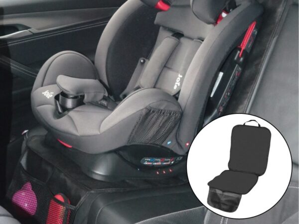 Cover, due to its universal dimensions, it fits almost all models of child seats. It is primarily a protection against dirt and damage to the upholstery. It has special cutouts for seat belts. There is rubber on the top of the mat to keep the mat in place. The shape does not affect the explosion of the air cushions. It is easy to assemble and disassemble. When folded, it takes up little space and can be easily transported in the trunk.