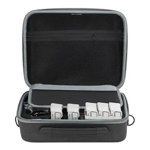 The bag for Mini 4 Pro is zippered with two zippers so you can open and zip it from either side. In addition, the bag has a handle allowing you to carry it in your hand, as well as belt hooks so you can transport it on your shoulder.