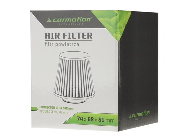 A car air filter is a key part of your vehicle’s intake system, ensuring optimum engine operation and protecting it from harmful contaminants. A high-quality air filter effectively stops dust, dirt and other contaminants that can enter the engine, helping to maintain high performance and reduce fuel consumption. The conical filter helps to provide more fresh air to the engine. Thanks to this, the fuel mixture is burned more efficiently – the torque, i.e. the acceleration of the vehicle, increases.