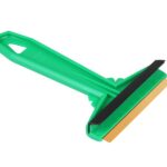 Scraper and funnel for consumables in the form of a small compact device. The cone-shaped scraper will allow to remove frost quickly and effortlessly without risking scratching the windows. The funnel will be useful, e.g. for topping up washer fluid. The product is made of durable plastic.