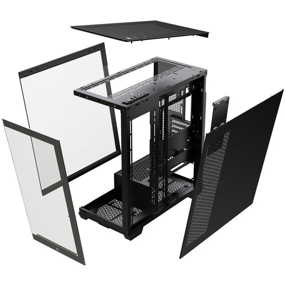 The front and side covers made of tempered glass are incredibly easy to remove. This gives you quicker access to the interior of your tower. Additionally, there is a 38mm thick gap behind the motherboard, making cable management easier.