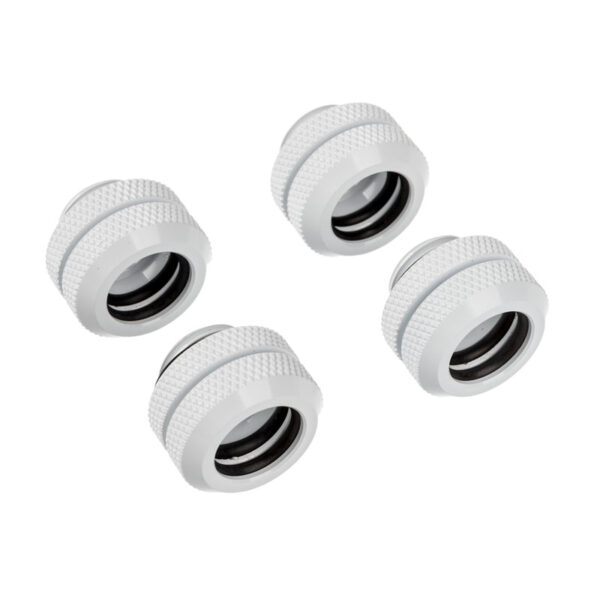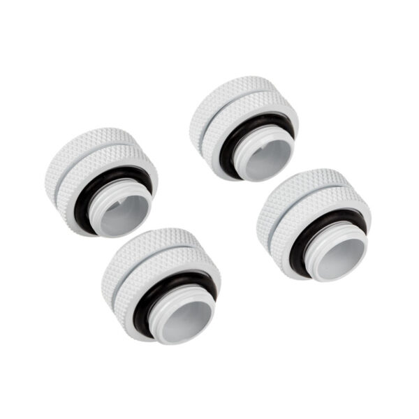 Four XF Hardline fittings, for 12mm hard tubes, from the Corsair Hydro X series, White
