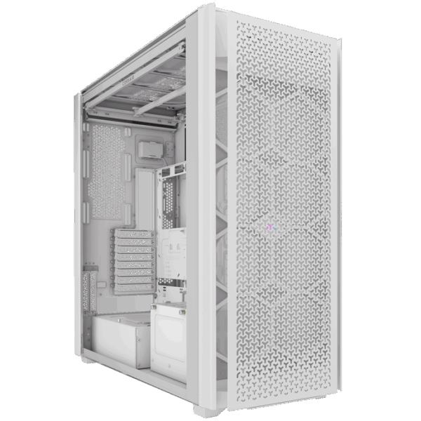 The Corsair iCUE 9000D RGB Airflow is a spacious Big Tower, optimised for the installation of high-performance hardware and ample airflow. Large radiators can be installed at multiple locations. The large Tempered Glass side door provides a perfect view of the interior and makes hardware installation and upgrades easier. The perforated right side panel is also attached to hinges.