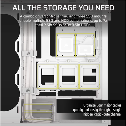 - Efficient cooling options with up to ten fans and radiators up to 360mm