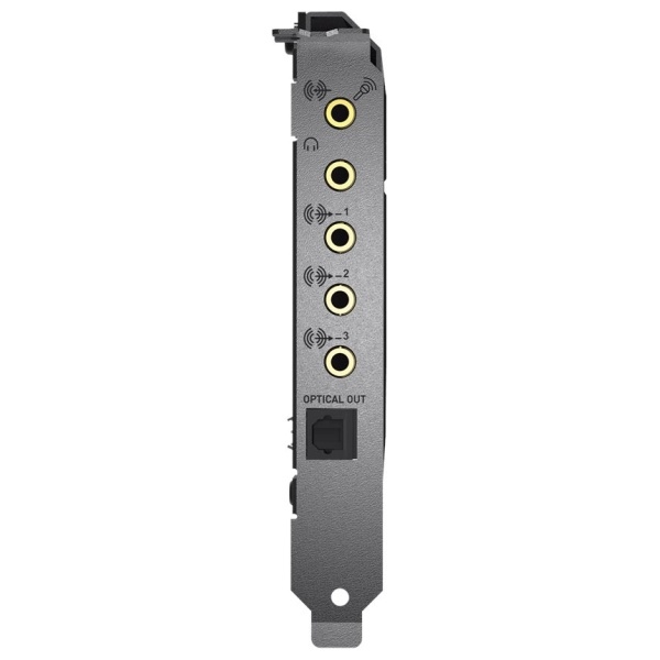 | Opcje wejść (główne) | 1 wyjście optyczne TOSLINK, 1 x 3.5 mm wyjście tylne (Rear), 1 x 3.5 mm wyjście centralne (Center / Sub), 1 x wejście mikrofonowe/liniowe 3,5 mm (domyślnie jako mikrofonowe z możliwością zmiany w oprogramowaniu), 1 x wyjście słuchawkowe / zestawu słuchawkowego 3,5 mm (domyślnie jako słuchawkowe), 1 wyjście przednie 3,5 mm |