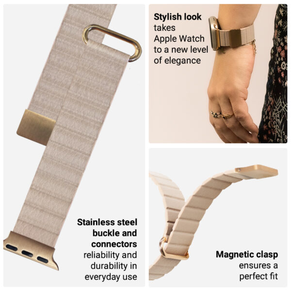 Crong Eclipse – Leather magnetic apyrankė skirta Apple Watch 38/40/41/42 mm beige