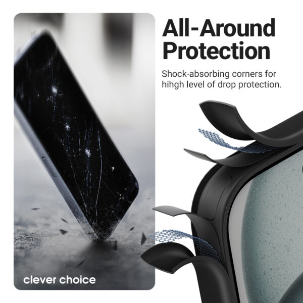 The back of the case is made of durable polycarbonate and then protected with a special anti-fingerprint coating. Thanks to this, you can’t see smudges or fingerprints on your phone. The reinforced corner design also protects the iPhone case in the event of drops on hard ground.