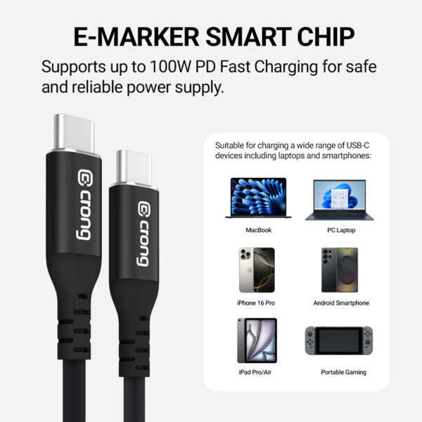 Crong Soft Link – 100W PD 5A USB-C to USB-C Cable 25cm black