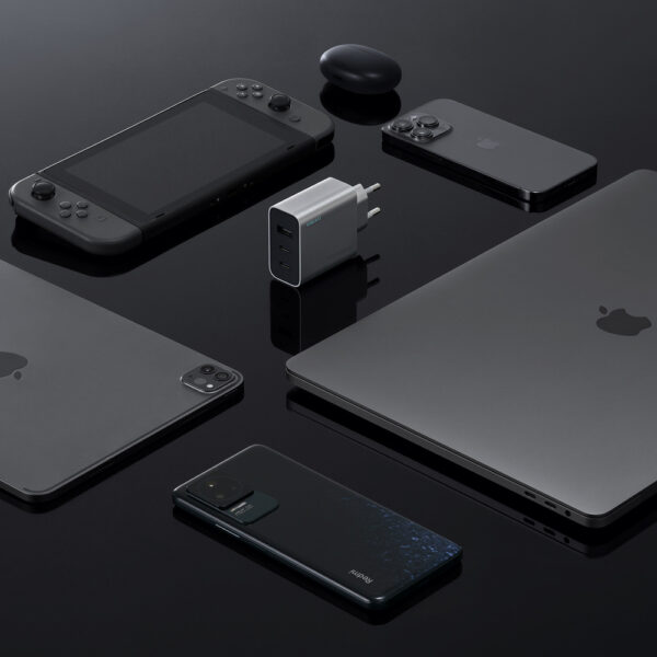 - Three output ports: 2x USB-C and 1x USB-A increase flexibility of use.