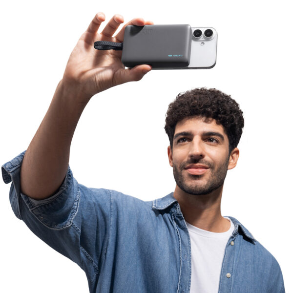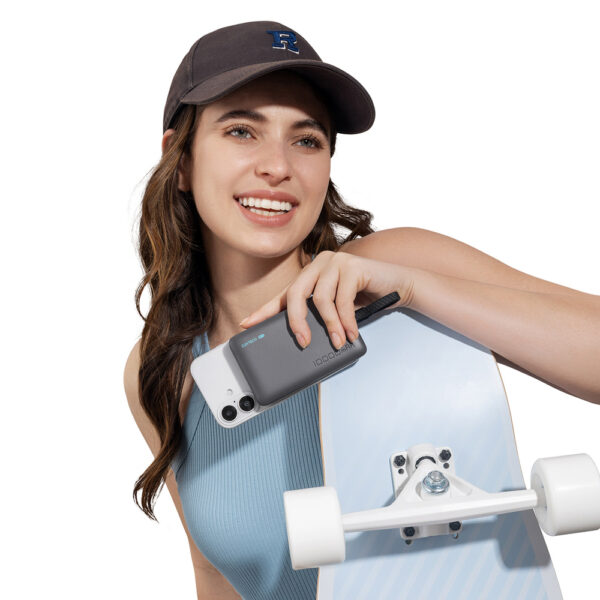 The power bank enables wireless charging with a magnetic fit that holds your smartphone securely on the charging surface.