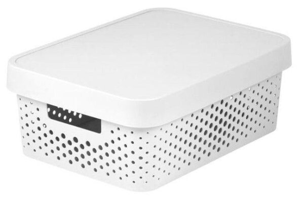 Prekės tipas- Daiktadėžė. Prekės ženklas- Curver. Artikulas- -. Ilgis- 36 cm. Plotis- 27 cm. Aukštis- 14 cm. Dėžės talpa- 11 l. Svoris- 0.53 kg. Spalva- Balta. Medžiaga- Plastikas. Dėžės paskirtis- Nemaistui, Daiktų saugojimo. Dėžė sulankstoma- Ne. Garantija- 24 mėn. Papildoma informacija- Su dangčiu..