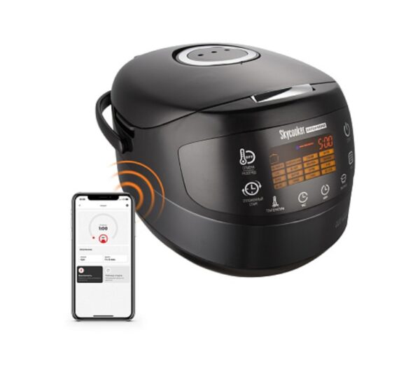 SkyCooker išmanųjį daugiafunkcinį puodą galima valdyti iš išmaniojo telefono iš bet kurios pasaulio vietos * mobiliosios programos Ready for Sky dėka. Programoje galite apskaičiuoti maisto produktų ir patiekalų kalorijų kiekį, paleisti ir sustabdyti programas, išsaugoti ir kurti receptus, pakeisti laiką ir temperatūrą gaminimo procese metu, valdyti pašildymo ir starto atidėjimo funkcijas būdami toli nuo namų.