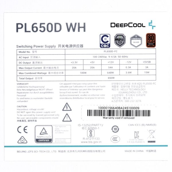 DeepCool PL650D maitinimo blokas 650 W 20+4 pin ATX ATX Balta