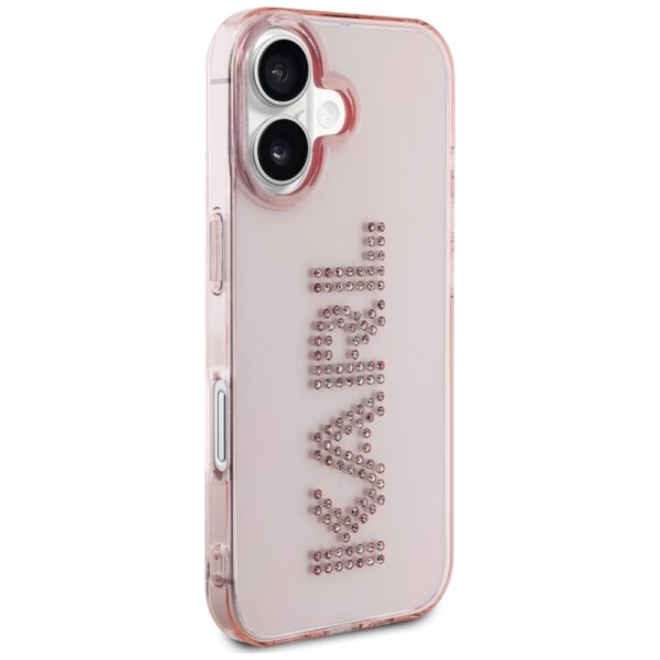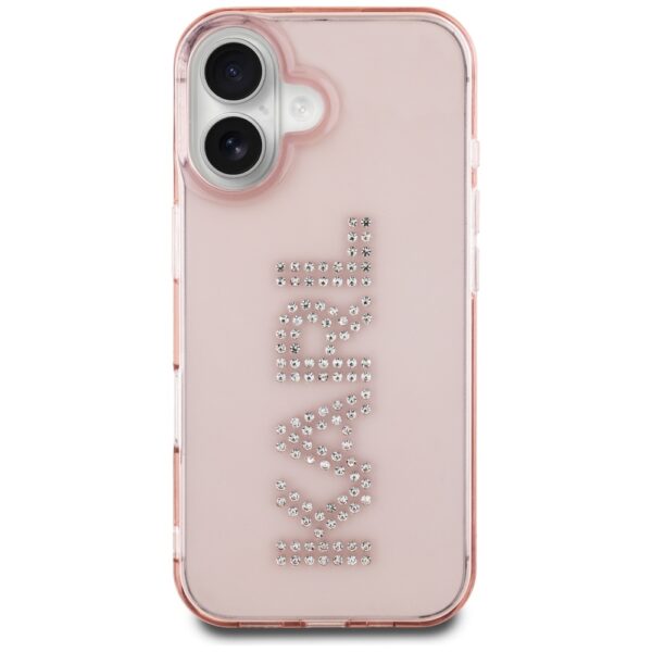 Dėklas Karl Lagerfeld IML Rhinestones Logo skirtas Apple iPhone 16 rožinės spalvos
