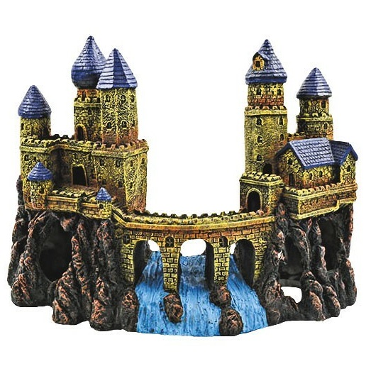 Dekoracija pilis su skylėmis. Ilgis 32cm, aukštis 23cm, plotis 14cm. Medžiaga – plastikas. Gamintojas: HapPet, Lenkija