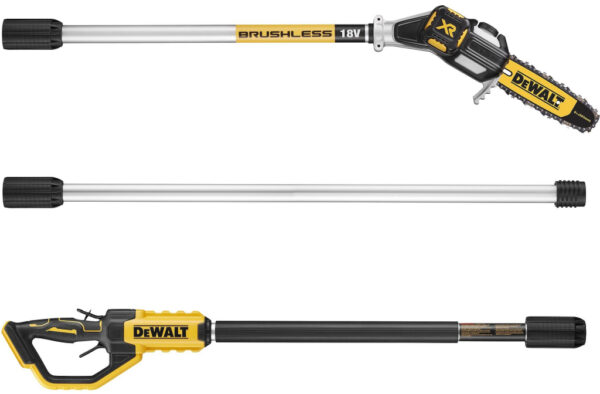 Didelio našumo bešepetėlis variklis – leidžia atlikti 55 pjūvius 100×100 mm šakose. 20 cm pjovimo juosta ir automatiškai tepama grandinė sklandžiam pjovimui. 18V 5.0Ah XR baterijos užtikrina ilgesnį veikimo laiką. Metaliniai tvirtinimo diržai ir kablys medžiui – patvarus laikiklis pjovimui ir lengvas nupjautų šakų pašalinimas. 3,0 m ilgis, su ilginamuoju elementu = 4,5 m siekis. Kampinė galvutė leidžia užimti labiau kontroliuojamą padėtį genėjimo metu. BE AKUMULIATORIŲ IR ĮKROVIKLIO
