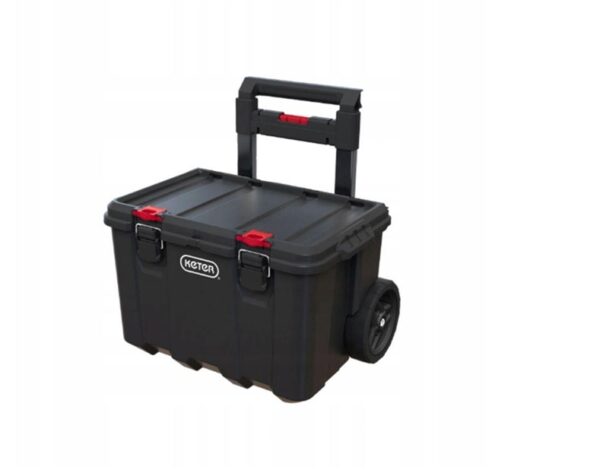 Prekės ženklas- Keter. Modelis- STACK N ROLL. Artikulas- 251493. Ilgis- 52.5 cm. Plotis- 41.1 cm. Aukštis- 55.5 cm. Svoris- 4.74 kg. Medžiaga- Plastikas. Spalva- Juoda, Raudona. Su ratukais- Taip. Su rankena- Taip. Atsparumas vandeniui- Ne. Su užraktu- Taip.