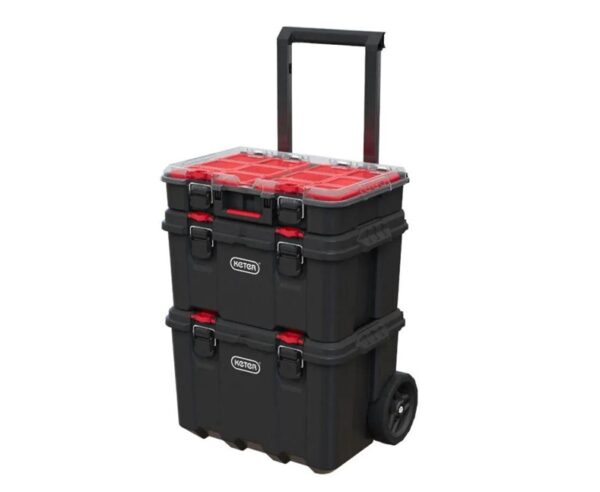 Dėžė Keter STACK N ROLL, juoda/raudona