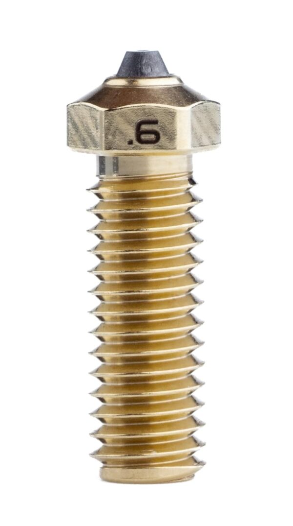 DiamondBack nozzles rely on a solid diamond tip to improve precision 3D printing. The tip is not a diamond coating, but rather a solid diamond substrate made of polycrystalline diamond. Not only is diamond the hardest material in the world, but it also provides best-in-class thermal conductivity, or heat transfer capability. Easily transfers heat from the hotend through the nozzle and into the filament–ensuring more precision printing and better layer adhesion on every print!