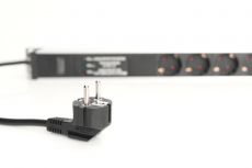 DIGITUS 19″ Rackmount power strip: 16A, 4000W, 250VAC 50/60Hz 7x outlet Schuko, 2 m cable, CEE7/7 Schuko plug, DN-95412