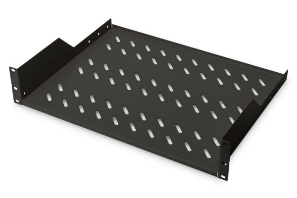 Digitus | 2U Fixed Shelf for Racks | DN-19 TRAY-2-SW | Perfect for storage of components which are not 483 mm (19”) suitable. Slim design which takes space of 2 height units. Easy and quick to mount or dismount. Dimensions 88x482x349 mm, up to 25 kg | Black