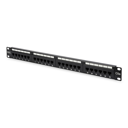 DIGITUS CAT 5e patch panel, unshielded, 24-port RJ45, 8P8C, LSA, 1U, rack mount, color black RAL 9005, DN-91524U