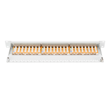 Digitus | Patch Panel | DN-91624S | Category: CAT 6; Ports: 24 x RJ45; Retention strength: 7.7 kg; Insertion force: 30N max | 48.2 x 4.4 x 10.9 cm | White