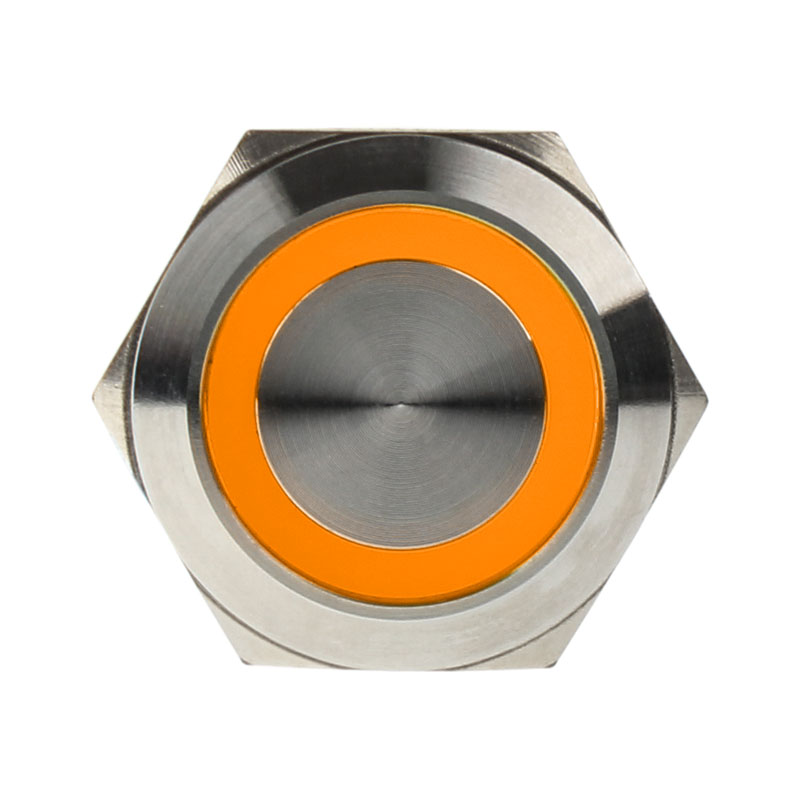 Silver Vandalism switch & push button (combined) made of steel with orange LED ring, thread: Ø 22 mm