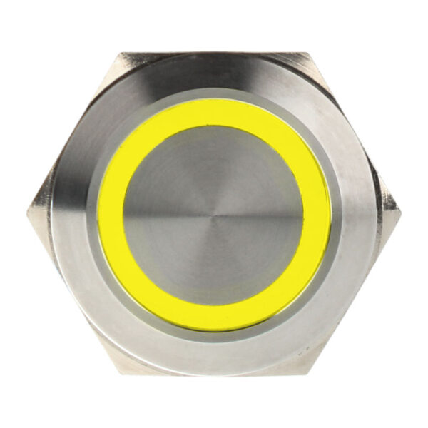 Silver vandalism switch & button (combined) made of steel with yellow LED ring, thread: Ø 25 mm