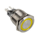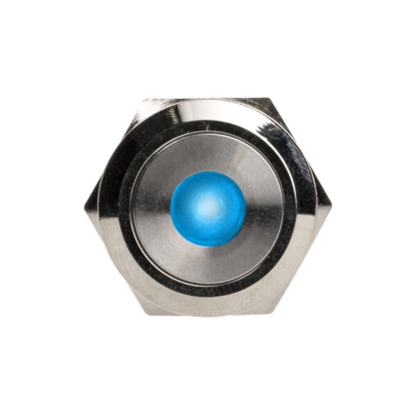 Silver vandalism button made of steel with RGB LED point, thread: Ø 22 mm